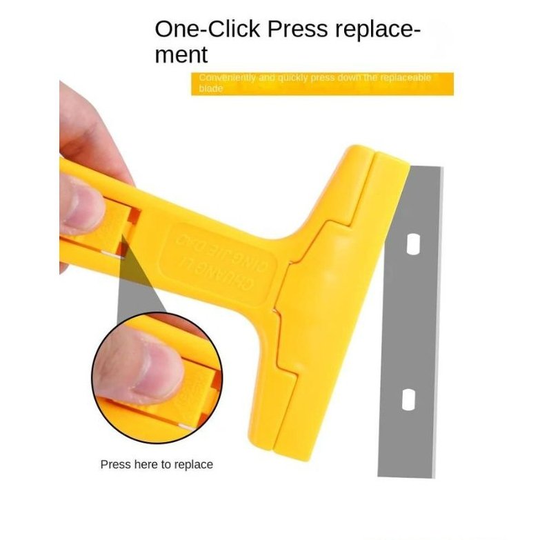 Tackle stubborn messes with ease using this Heavy-Duty Razor Blade Scraper Tool, designed for quick and efficient removal of labels, decals, stickers, caulk, adhesive residue, and paint splatters from glass, tiles, mirrors, and other smooth surfaces. Featuring a sharp, replaceable razor blade, this scraper tool cuts through tough grime without scratching surfaces, making it perfect for home, office, workshop, or automotive cleaning tasks.